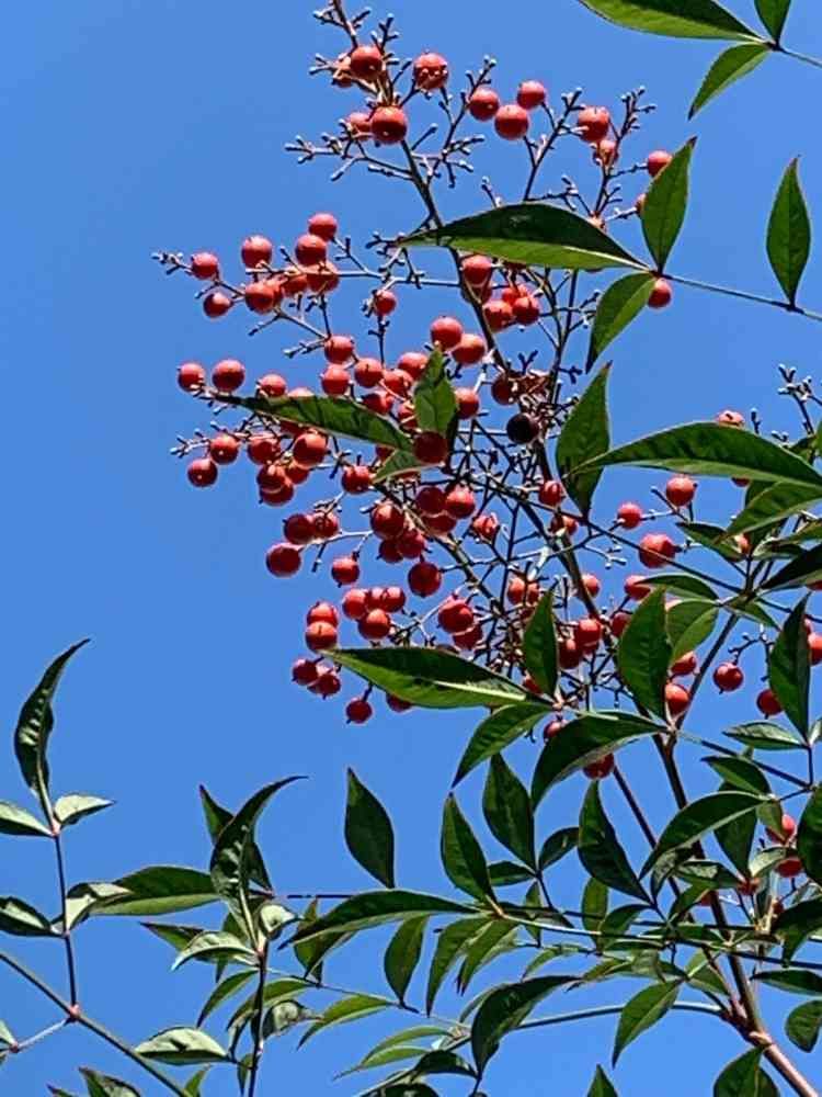 すみさんの小さな庭,ナンテン,青空。の投稿画像