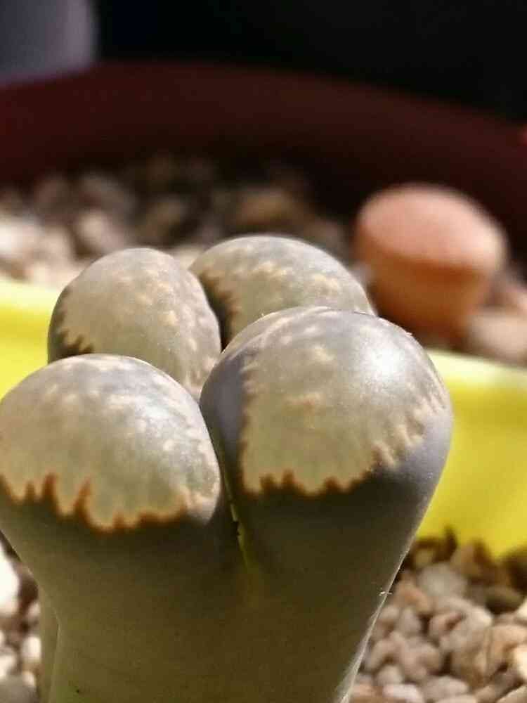 買った時には、徒長したぶん 2㎝程を深植えしてあったリトープス。知らずに脱皮を見守ったら、ヒョロヒョロに〰