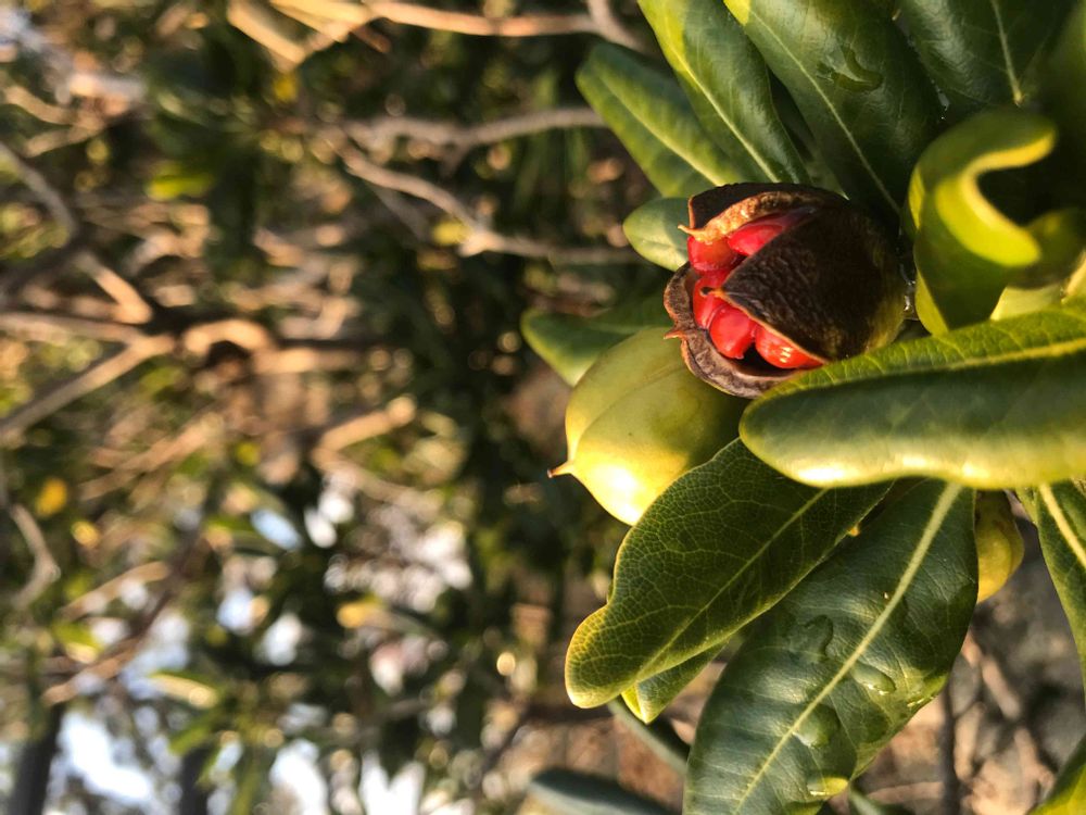 最後は、皮がぱっかりはぜて赤い実が全開になってます。