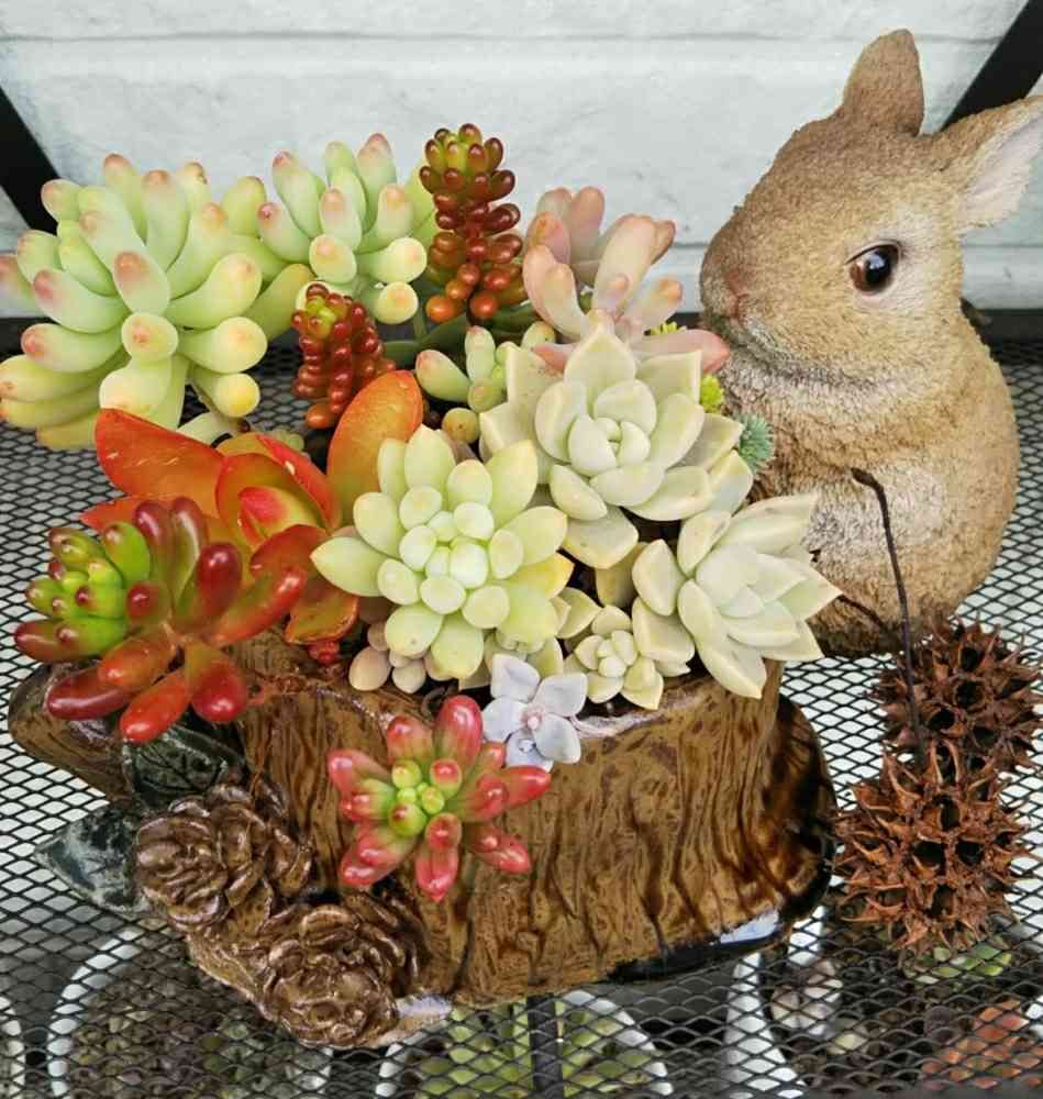 朝晩寒くなって、切り株鉢の寄せ植えも紅葉してきました🍁