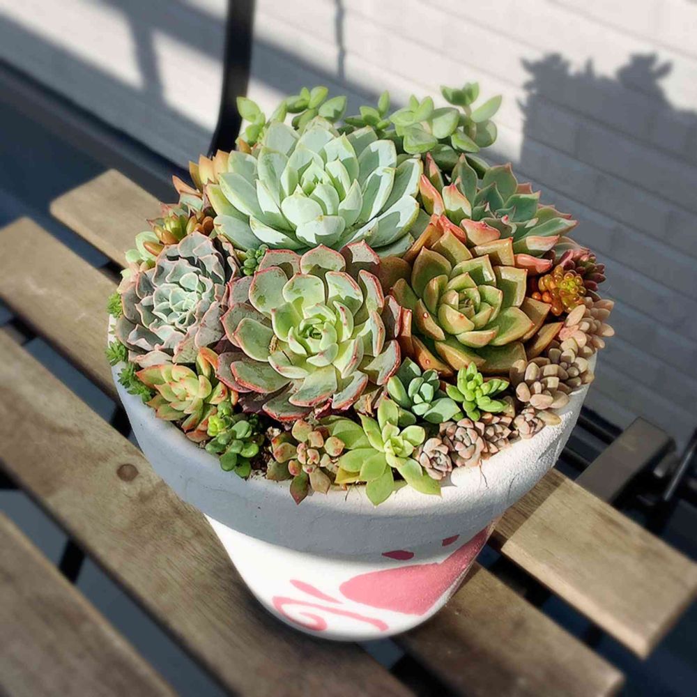 この多肉のブーケみたいな寄せ植えをインスタで見てから多肉に興味が湧いて。そしてGSに流れてきました(笑)最初はセダムのチマ寄せでしたが、今期は思い切ってエケベリア沢山の寄せ植えをしてみました!とってもたのしいです!