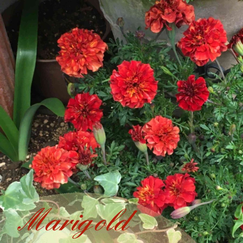 おはようございます☀マリーゴールドって真夏のお花のイメージでした🌼 それが秋の深まる今の季節まで、しかもこんなに可愛く赤い色で咲く品種があるのですね❤️赤と緑でこの季節のカラーとしても楽しめそうな!🎄😊