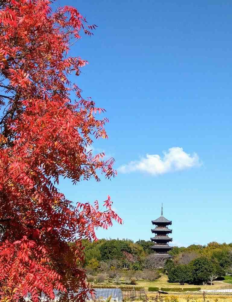 爽やかな青空です。岡山 備中国分寺 五重塔です。紅葉も綺麗でした。