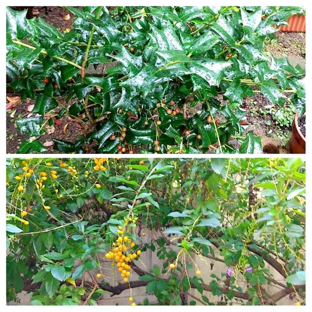 クリスマスのリースの材料が色づいてきました。上のクリスマスホリー!早く赤に!💓