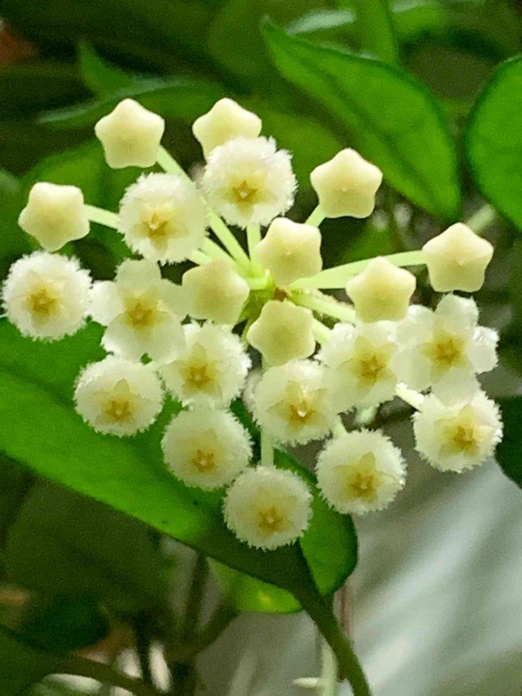 さん、ホヤは、つる性、根腐れしやすい、寒さに弱い観葉植物と、なかなかにハードルが高いのですね。種類は、クミンギアナ、ラクノーサリップカラー、コンバクタハリエガタでしたかな
