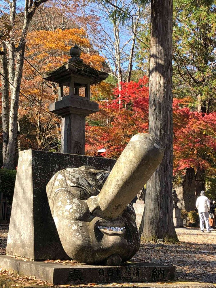 11月10日、古峯ヶ原神社⛩の巨大な天狗の面👺と紅葉🍁🍁