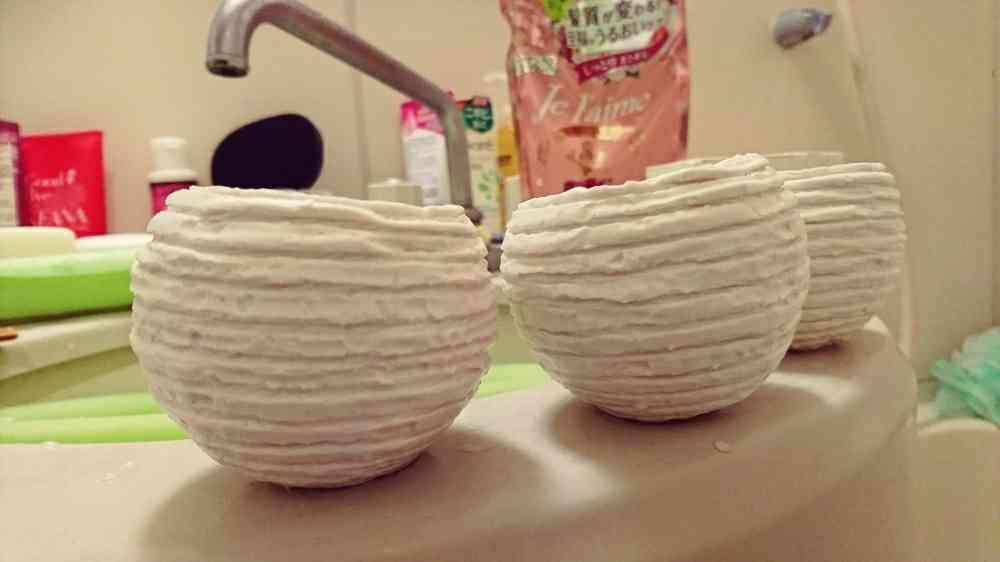 先日作ったセメント鉢…アルカリ性を抜けようとして1日水浸ししたけど、たぶんあんまり効果ないかな?
