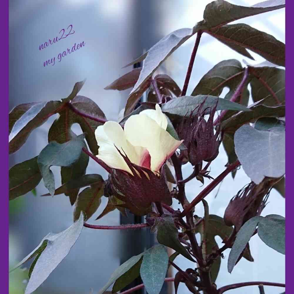 すでにコットンは1つ採れているけど、また咲いてくれたのよ😆