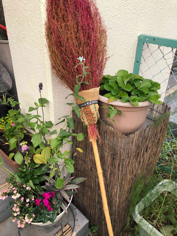 コキアでホウキを作ってみました💕😄ベランダ用に100均一で使っていた物に麻袋があったので根っこを切って✂️結んでみました