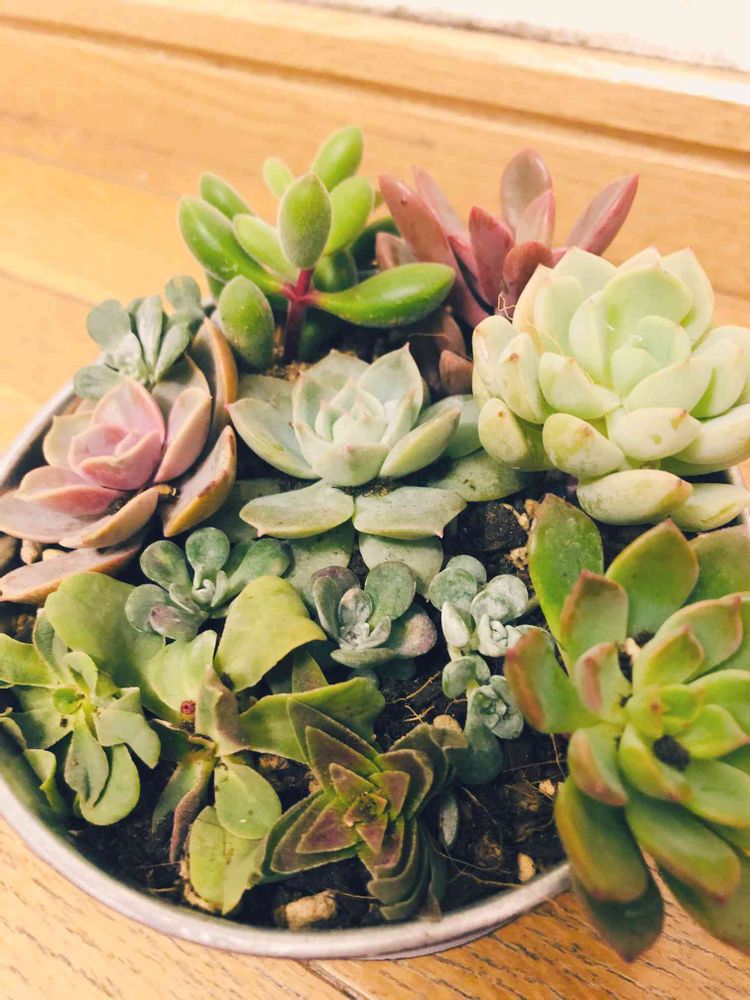 初めて多肉を寄せ植えしました😣感想……なかなか難しい💦💦とりあえず好みの植物を買ってきて寄せ植え🤣余ったところにレイウシアの子株ちゃんをぶち込むという荒技…😰とりあえずこれで…初寄せ植え完了です