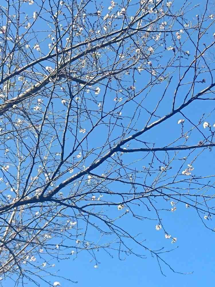 周りの桜の木は“桜もみじ”ですが、一本だけ葉っぱがなく、花が咲いていました。