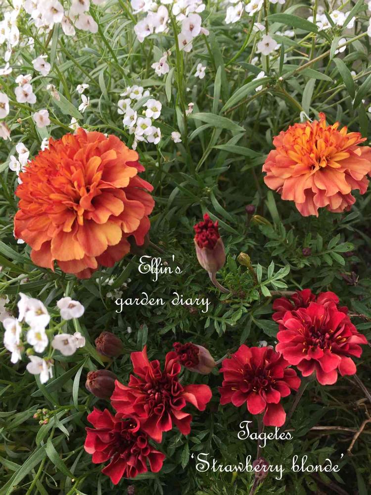 今日のpicは、フレンチマリーゴールド‘ ストロベリーブロンド’とスーパーアリッサム。