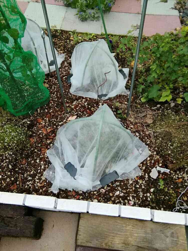 昨日急いで冬囲い初めて不織布を掛けて見ました