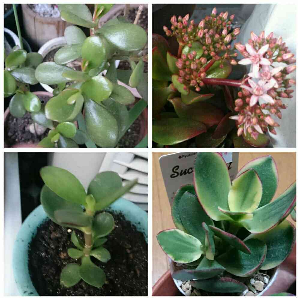 右下は、斑入りの金のなる木。縁が少し赤く紅葉します‼花は…う~ん(´-ω-`)咲くのか分かりません😅