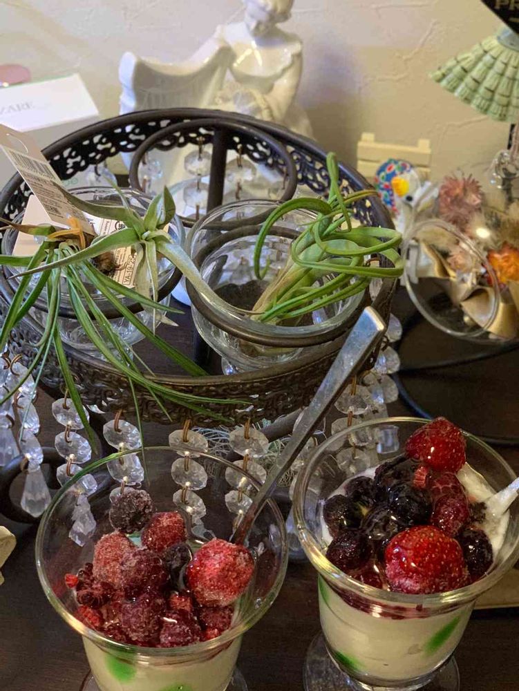 チランジアさんがいるのほ、3個中1個ガラスが欠けて壊れかけの入れ物です(笑)