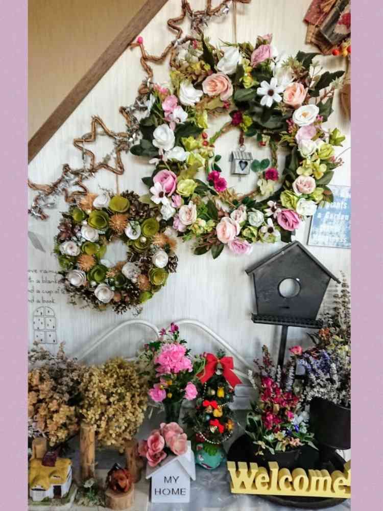 パステルカラー造花、ドライなどで手作り品で賑わってます😊🎶