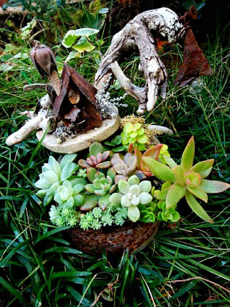 流木と錆びのお家で雰囲気いっぱいだから、多肉さん寄せるだけでメルヘンな世界💞