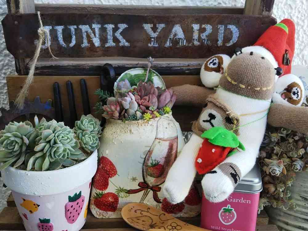 いちごのリメ缶の寄せ植えも素敵ん♪。.:*・゜♪。.:*・゜