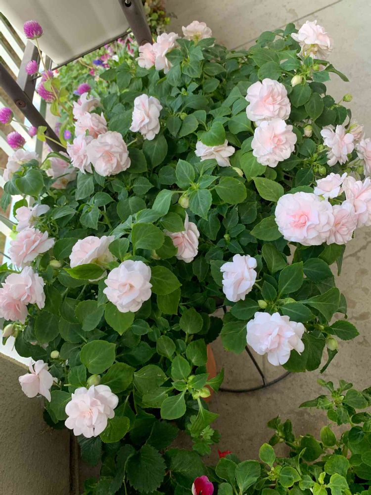 バルコニー/ベランダ,八重咲きインパチェンス,八重咲きインパチェンス・シルエット・アップルブロッサムの投稿画像
