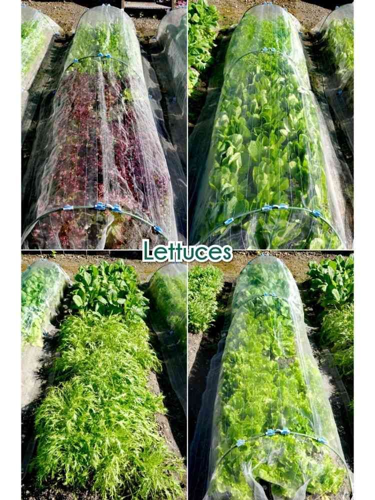 播種してから2ヶ月弱、防虫ネットの中で、順調に育って来た。それぞれ30株、種を7,8個ずつ蒔いて、すぐりながら順次収穫。🧺👩🌾