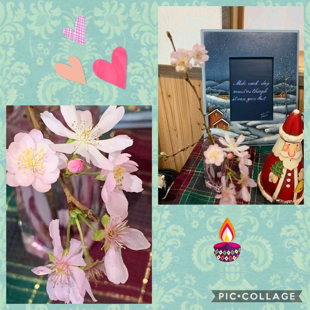 桜にサンタさんって組み合わせってありですね❣️
