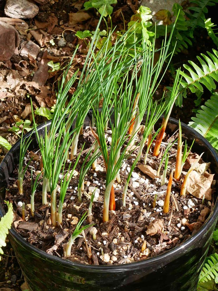 地植えのサフランの球根を春に掘り上げ9月に鉢植えしておきました。