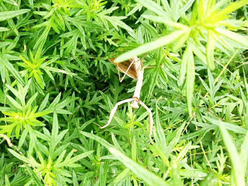 カマちゃん。バッタよりも動きがスローでこちらも動き止めちゃいますよね😁4歳の末娘もブローチにして遊んでました!カマちゃん!ナイスポージング💕