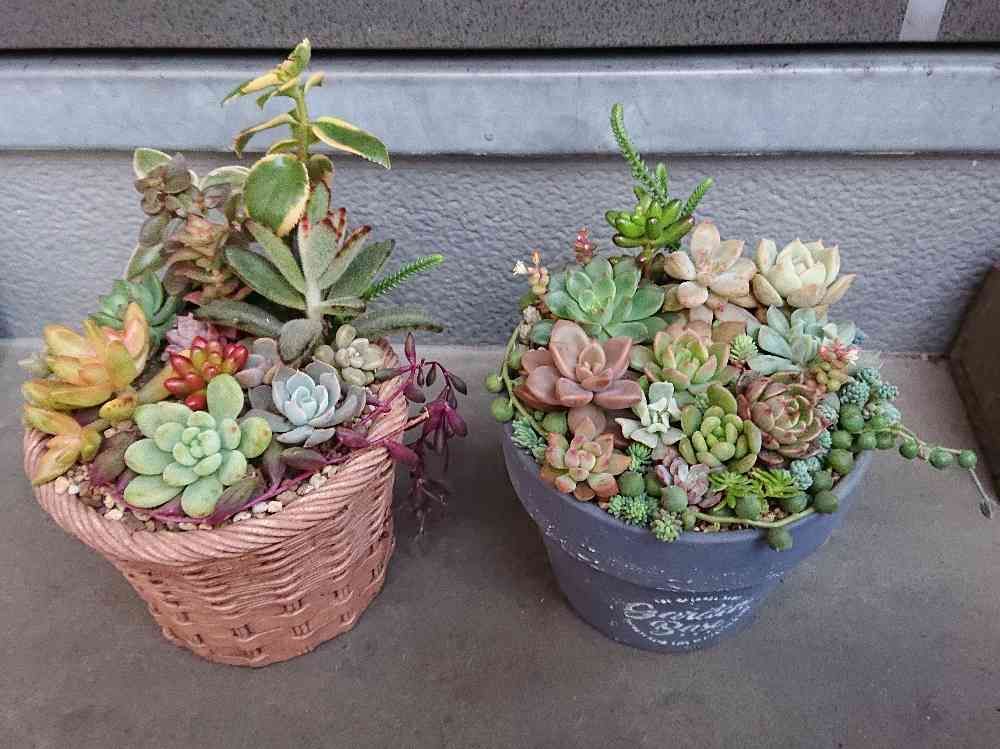 右の鉢はちょっとだけちまったのでほぼ完成だけど左の鉢はセダムまだ入ってませーん😂暗くなったので今日はここまで_| ̄|○ il||li