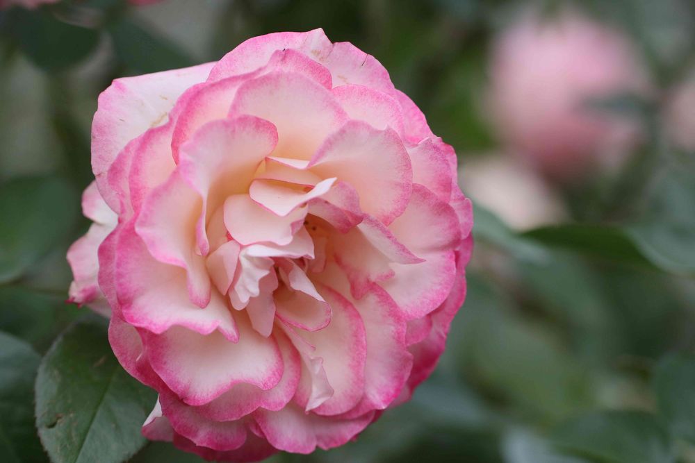 濃い縁取りのピンクが、可愛らしく、つい香りを嗅ぎたくなりそうです。