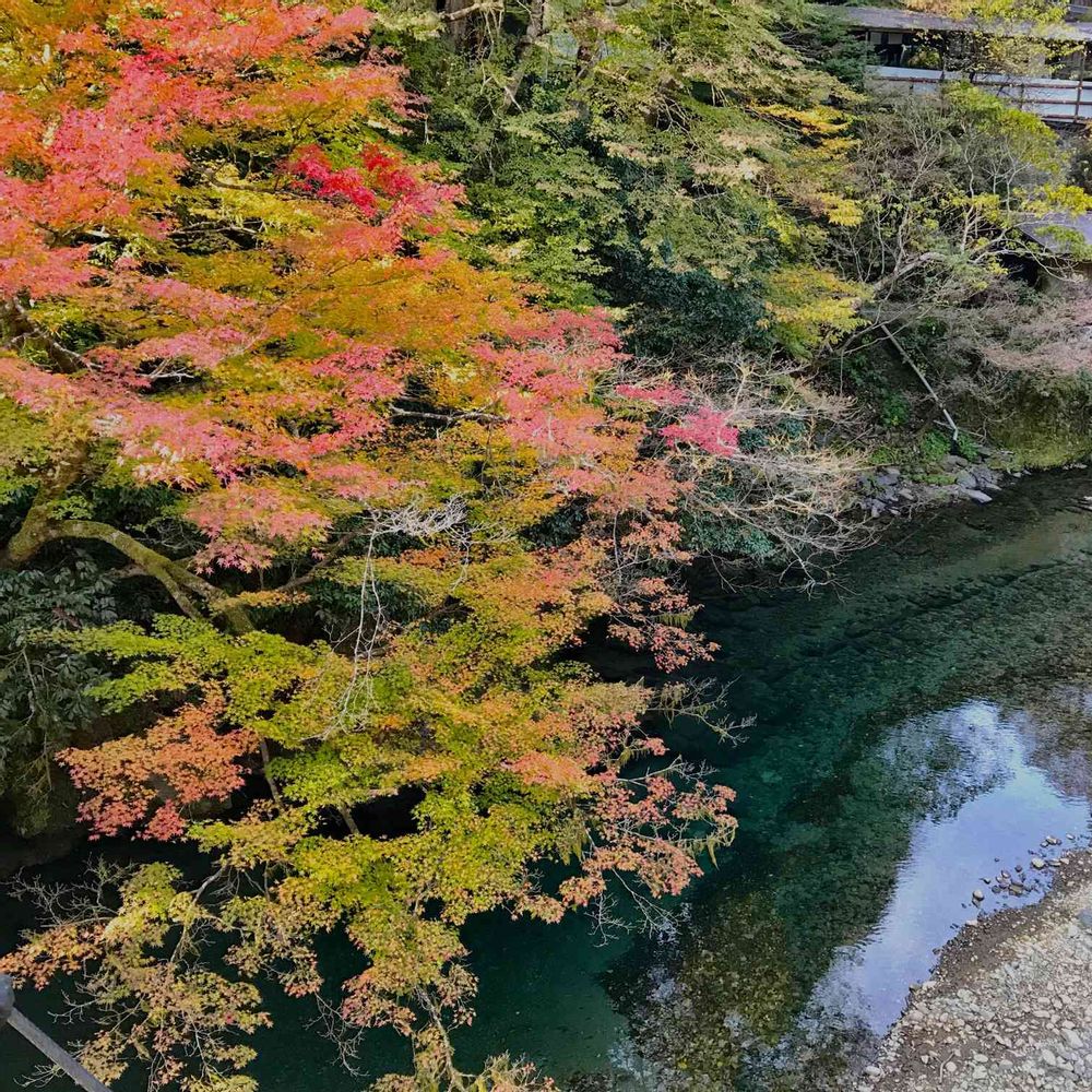 紅葉と澄みきった川の流れ、心が洗われますね😃