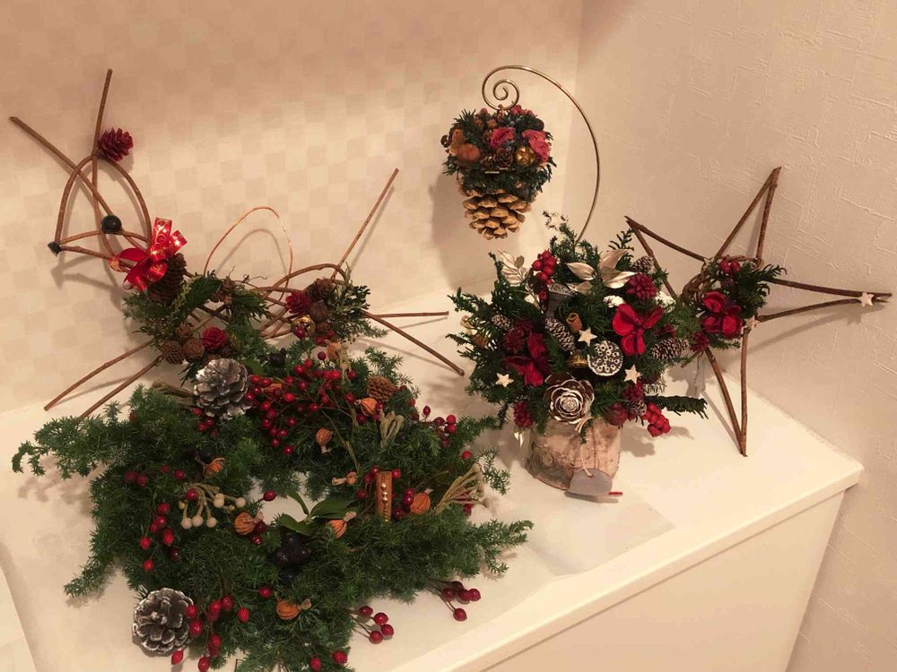 未完成だったリースに松ぼっくりの飾り付け完了です!