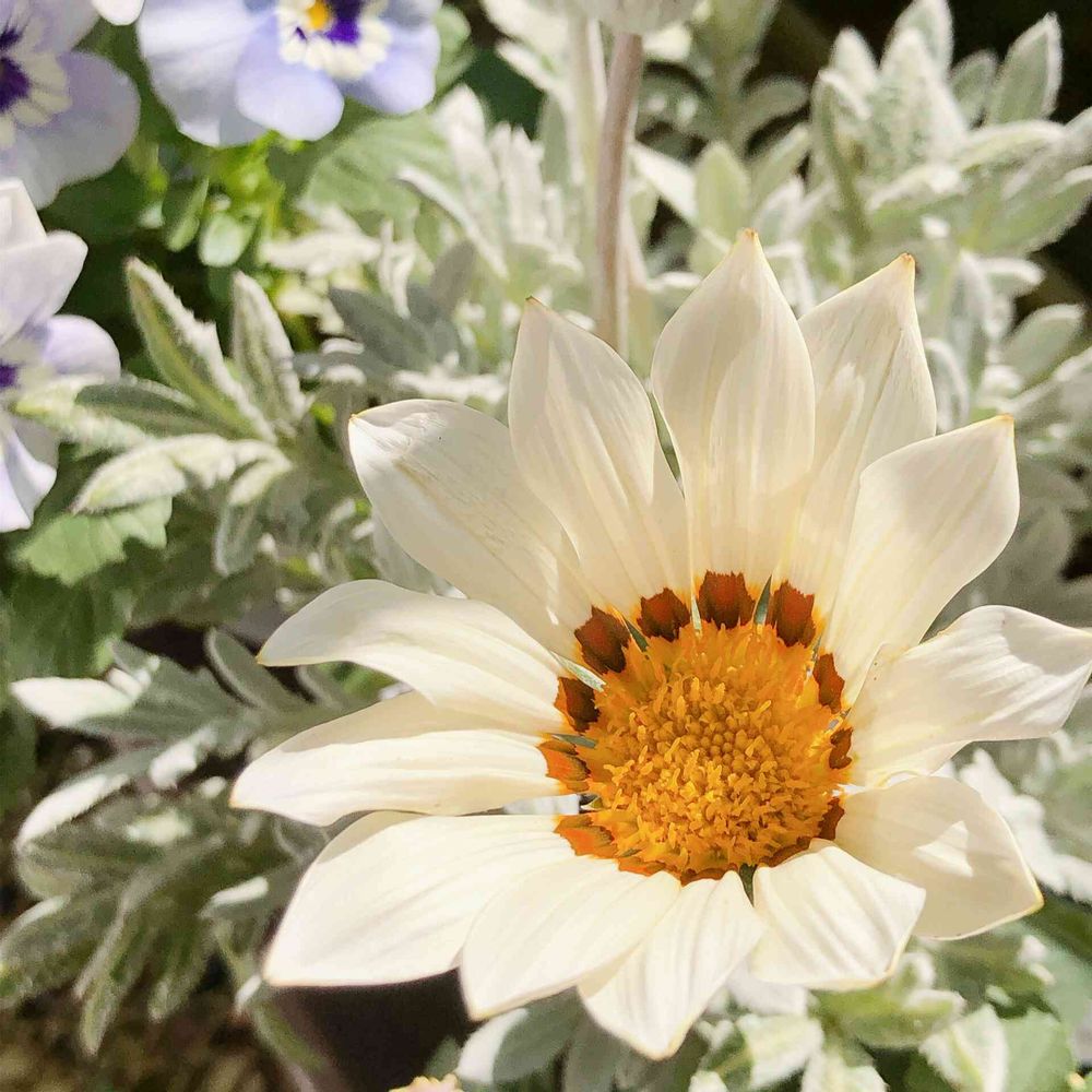 シルバーリーフがきれいで買ったガザニアの花が咲きました。花も優しい色のガザニアでした。