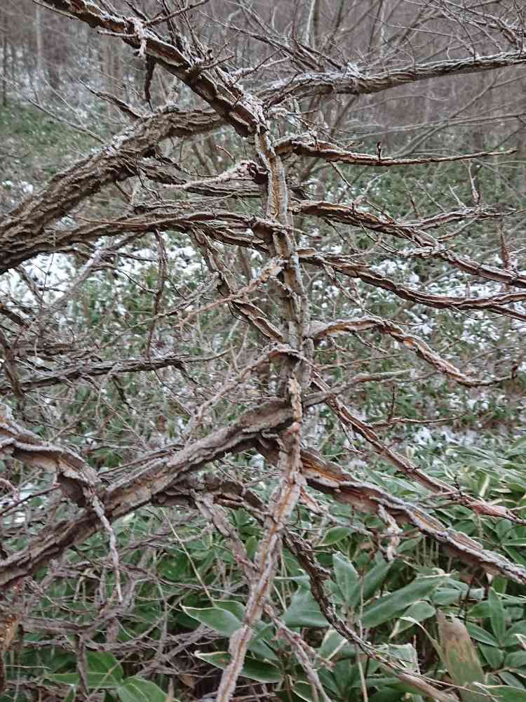 ニシキギでわないのですが、コルク質の木肌が面白いのです。葉っぱはさすがに落ちていました。