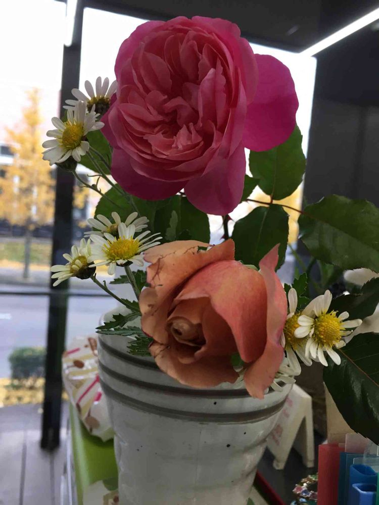 オフィスの一画にきれいなバラの🌹切り花が慎ましく飾られていることでみんなが、どんなに癒され優しい気持ちになれるかと想像できます。🙂😊💕