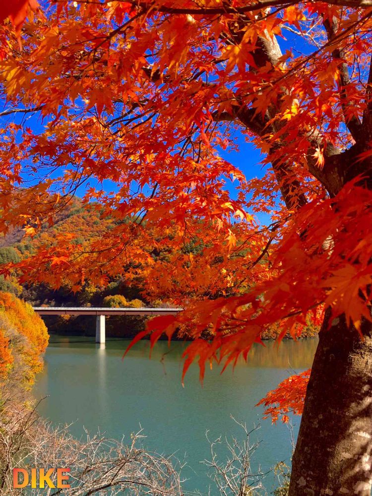 でしょう⁉️ モミジの葉を透かして見える緑の湖面や対岸の青が綺麗で、こんな構図ばかり撮ってしまいました💦💦😅
