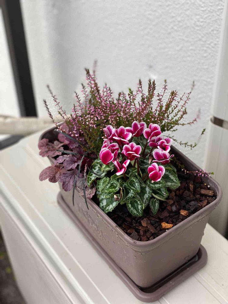 ガーデンシクラメンとカルーナの寄せ植え💗