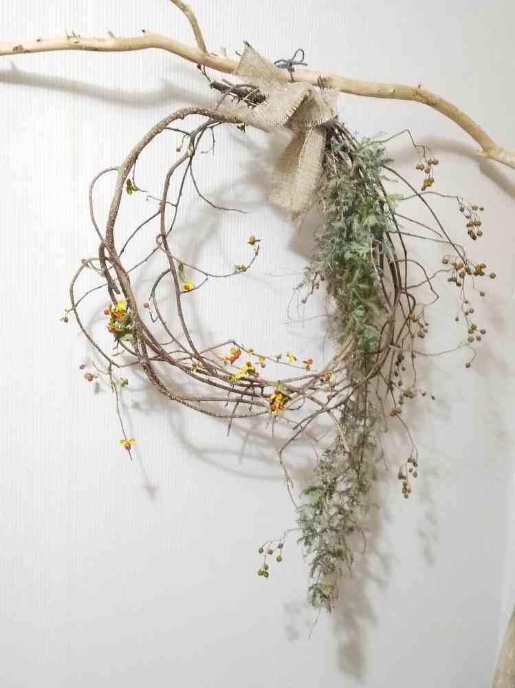 ツルウメモドキの実が少なかったので野バラの実とミモザもいれて😃