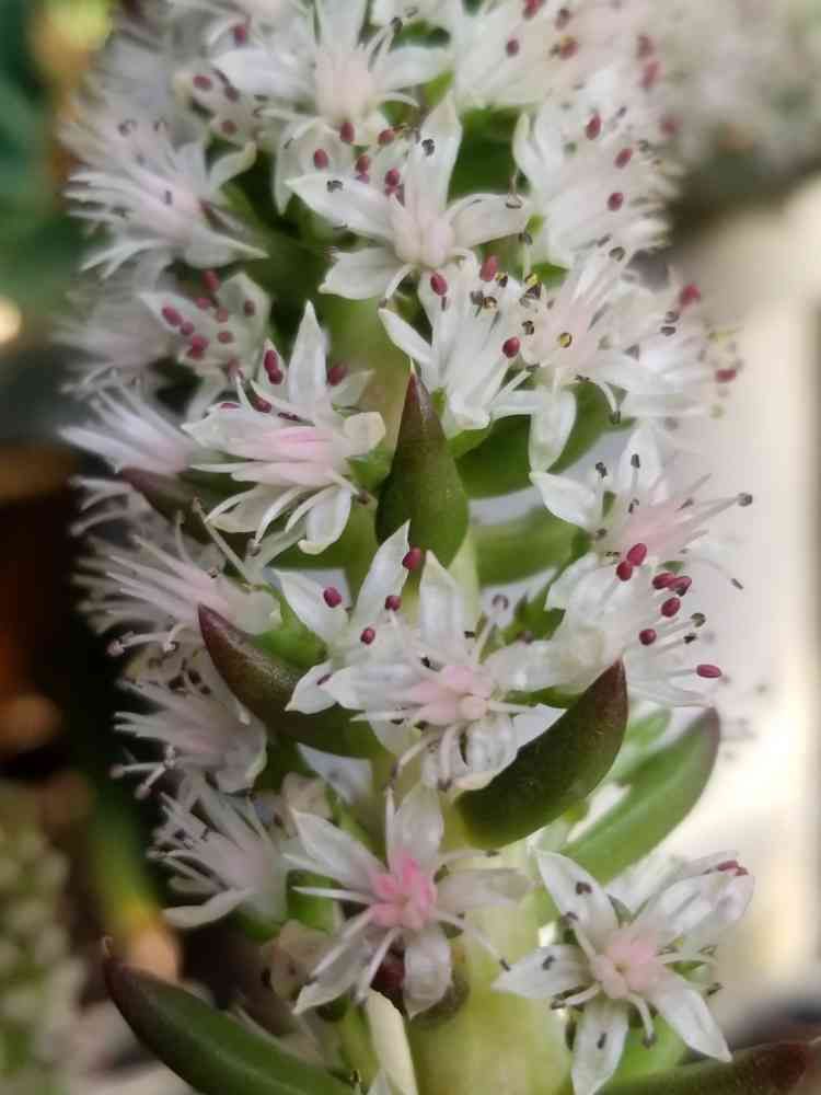 一本先端まで全部咲いたら何百個もある小さなツメレンゲの花が中心が薄いピンクになってきてまたまたかわいらしいんです💕