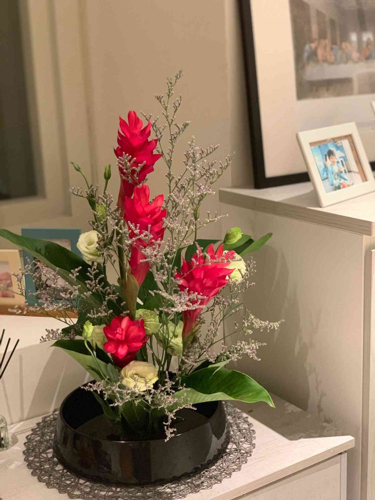 常夏のお花だけど、なんとなく時期的にクリスマスカラーを意識しました😊(自己満足)
