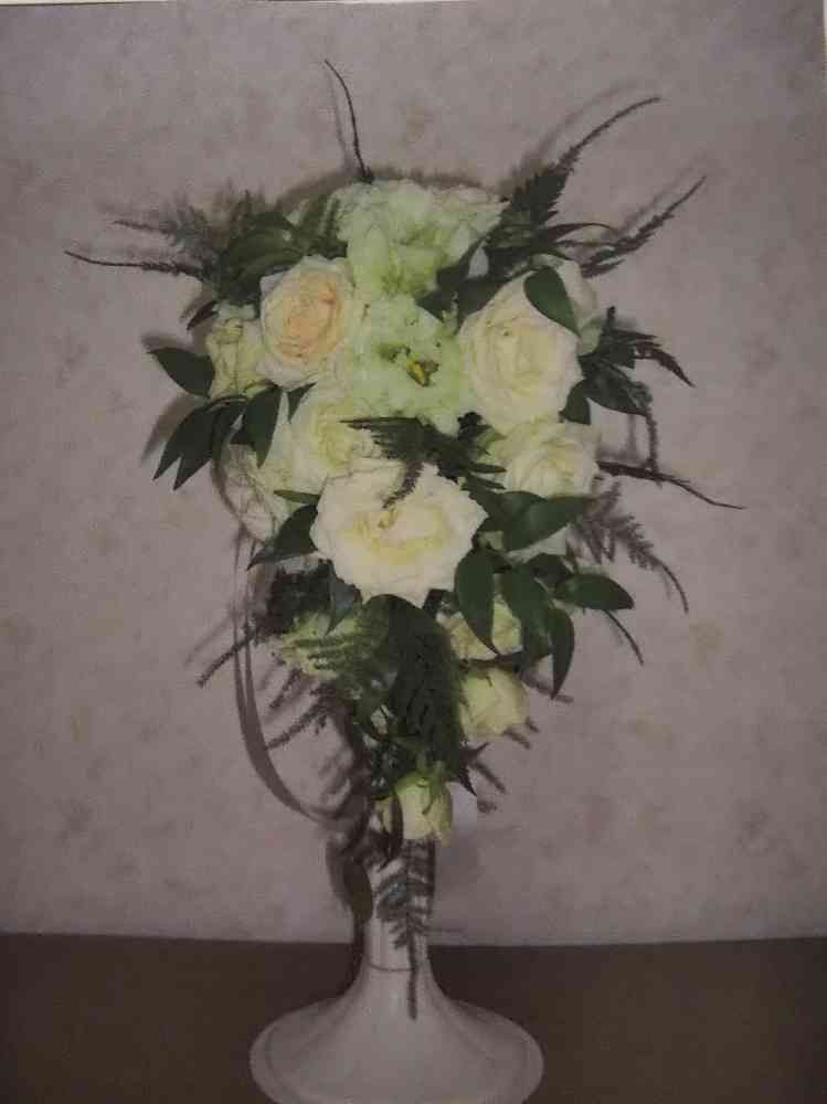(5)残りの花材で、上部のラウンドと、下部のガーランドが、繋がるように埋めていく。