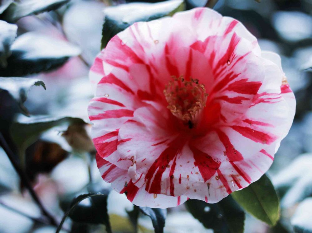 いつどこで撮影したか忘れてしまいましたが、班目というかストライプ?というか…可愛い柄の椿さん。