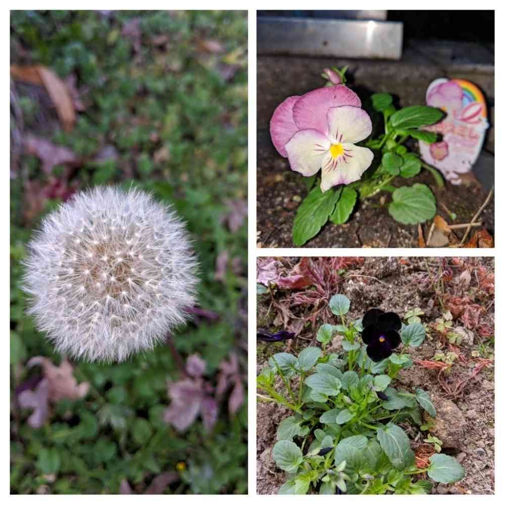 右上のビオラさん、◯◯スミレは、ナーニ?うちで蒔いたパンジービオラに似ていますが、いく袋も一度に種まきしたので、混乱してるお花があります。