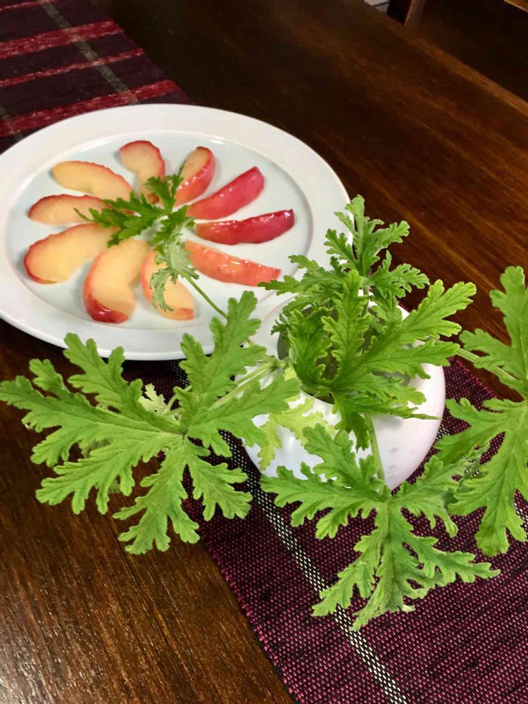 ハーブ。焼きリンゴの香り付けに欠かせない。年数が経つと香りが薄れるので、挿木で更新している。水さしでも根が出る。