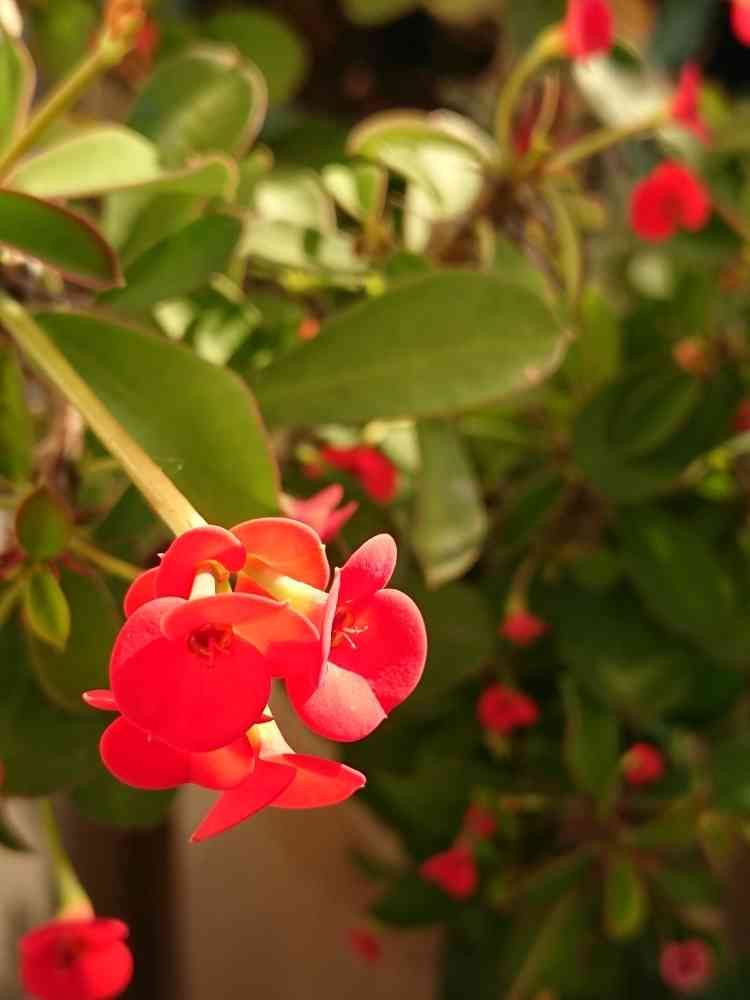 わぁー、まだ綺麗にたくさん咲いてますね🥰我が家のハナキリンさんは、お家に入れましたよ😁入れた途端、葉っぱが黄色くなって、たくさんとりました😢またぼうずになりそう😣無事に冬越し出来ますように🙏