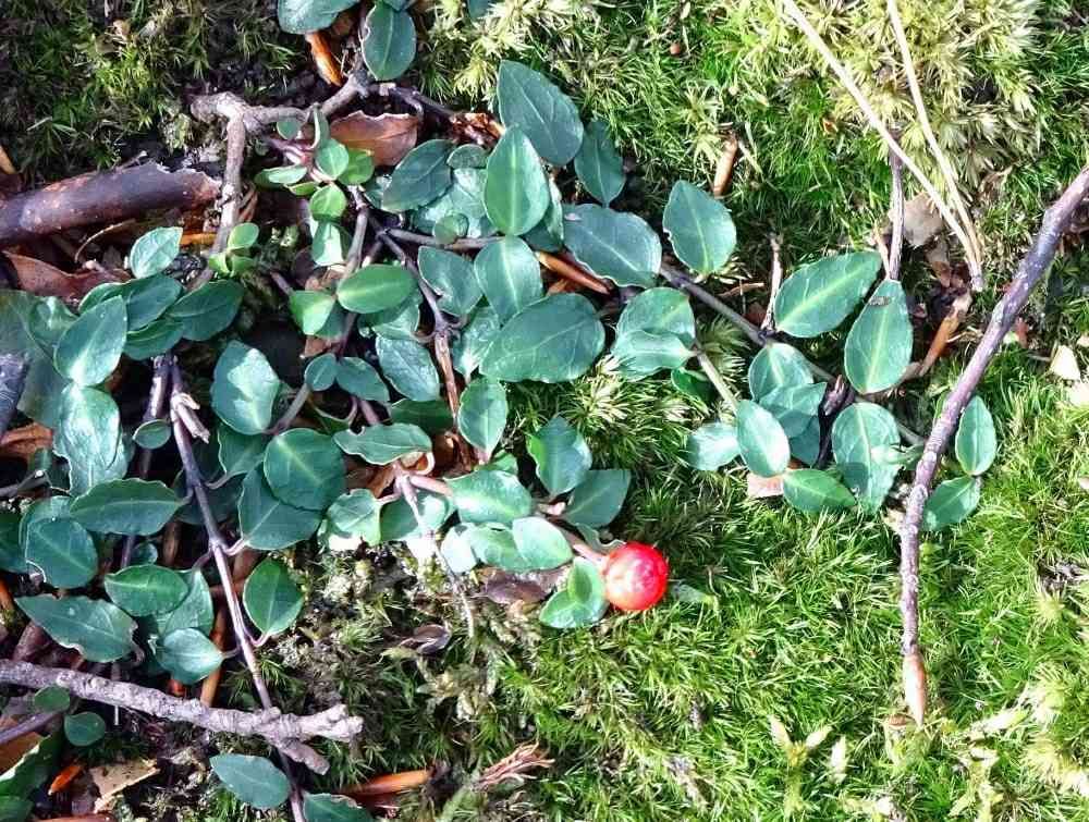 日曜の登山で見つけたのですが、足元にはびこるように赤い実がありました。3mmくらいの小さな実でした!!あまりの小ささに感動しました。