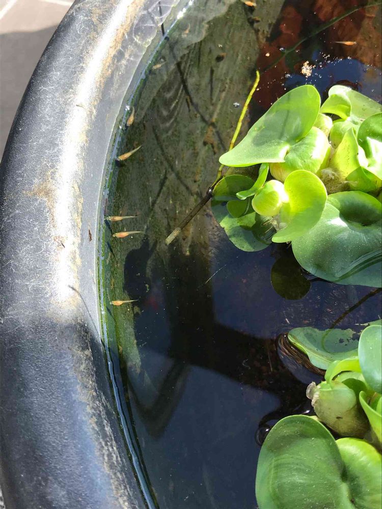 主人がサンルームに入れたメダカ鉢にいる稚魚達も、すっかりメダカらしくなりました。