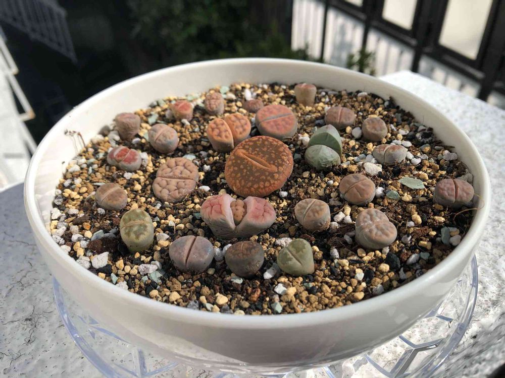 リトープスさん寄せ植え。ひとつひとつの名前はわからないけど、それぞれ個性があってカワイイ。