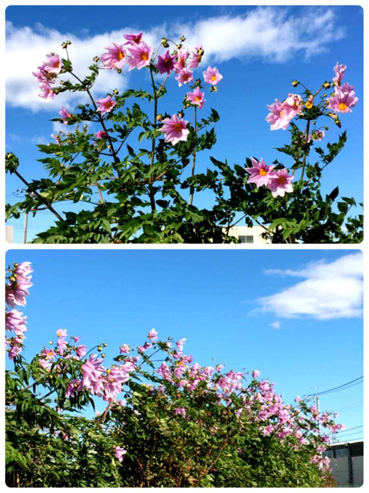 さん今皇帝ダリア どこでも見られますが青空に映えて素敵です💕