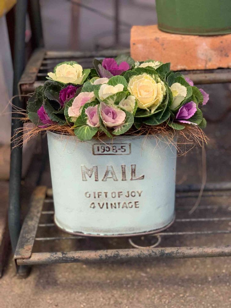 ヒロさんの玄関,ブリキの鉢, ハボタンの投稿画像