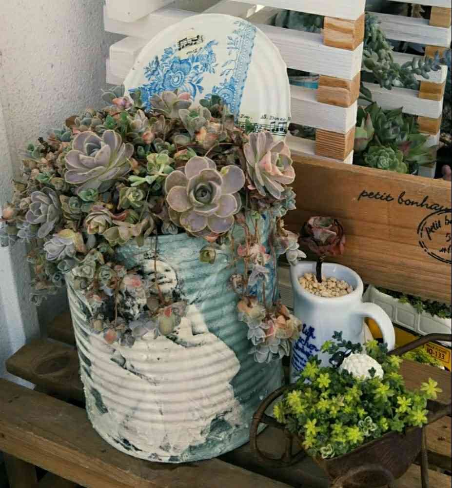 渋くなった子持ち蓮華とほーちゃんさんのリメ缶が素敵にマッチしてるね💕